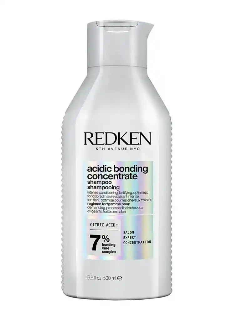 Nuestra fórmula más concentrada ofrece una reparación definitiva, un acondicionamiento intenso y protección contra el desvanecimiento del color. Dale a tu cabello lo que se merece con la gama AcidicBondingConcentrate de Redken, que fortalece los enlaces debilitados de las hebras capilares y restaura la vitalidad del cabello extremadamente dañado. Transforma todo tipo de cabello y texturas, incluso los más demandantes y procesados. ¿El resultado? ¡Cabello que se ve y se siente más saludable! Shampoo sin sulfatos ABC reparación total cabello dañado AcidicBondingConcentrate 500ml: Ve más allá y bríndale a tu cabello la máxima reparación con el shampoo ABC. Su fórmula sin sulfatos con ácido cítrico contiene un complejo de cuidado de enlaces concentrado que refuerza los enlaces debilitados dentro del cabello para mejorar su fuerza. Este shampoo equilibra el pH, ya que está específicamente formulado con un pH ácido para protegerte de los efectos negativos de la coloración del cabello, las herramientas de calor e incluso el agua. Beneficios: ·56% menos quiebre*. ·82% menos puntas abiertas**. ·11 veces cabello más suave**.