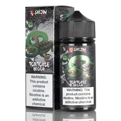 Tortoise Blood de Shijin Vapor presenta una infusión duradera e inolvidable de frambuesa azul y manzana verde, coronada con un dulce sorbete.