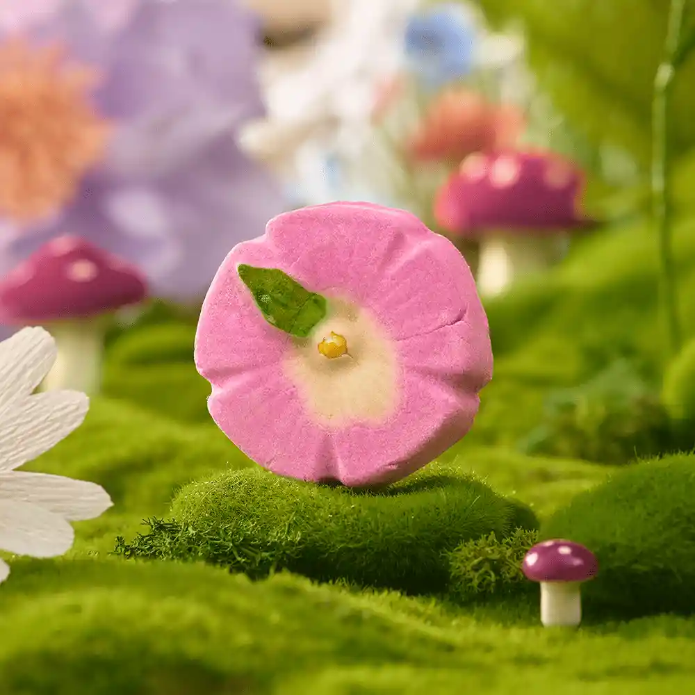 Báñate en un manto floral de mimosa y mandarina con la bomba de baño Shower Of Falling Cherry mientras te transportas al paisaje de los cerezos en flor.
