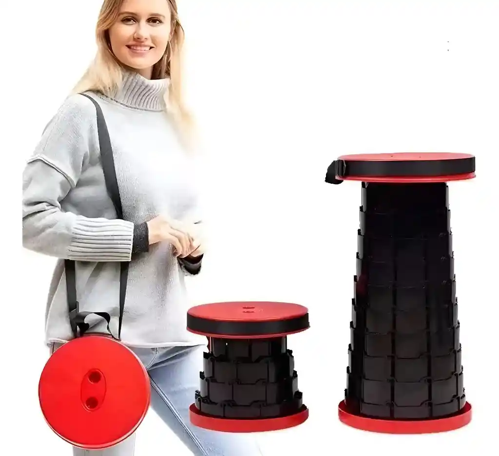 excelente silla retráctil de un plástico de alta resistencia fácil de llevar a todos lados desde el jardín de tu hogar, un parque o hacer filas de largas horas o simplemente ir de pesca o camping. Estructura en forma de cilindro. . Cierres de conexión ajustados. . Sentada segura y cómoda. . Agarradera y correa para transportar. . Material nylon de alta calidad + plástico ABS. . Altura extendido hasta 45 cm. . Altura plegado 6 cm. . Diámetro del asiento 25 cm. . Base del taburete 25 cm. . Carga máxima: 80 KG. . Longitud de la Correa: 110 cm. . Color: negro con taburete rojo. Contenido del paquete: 1 X silla plegable