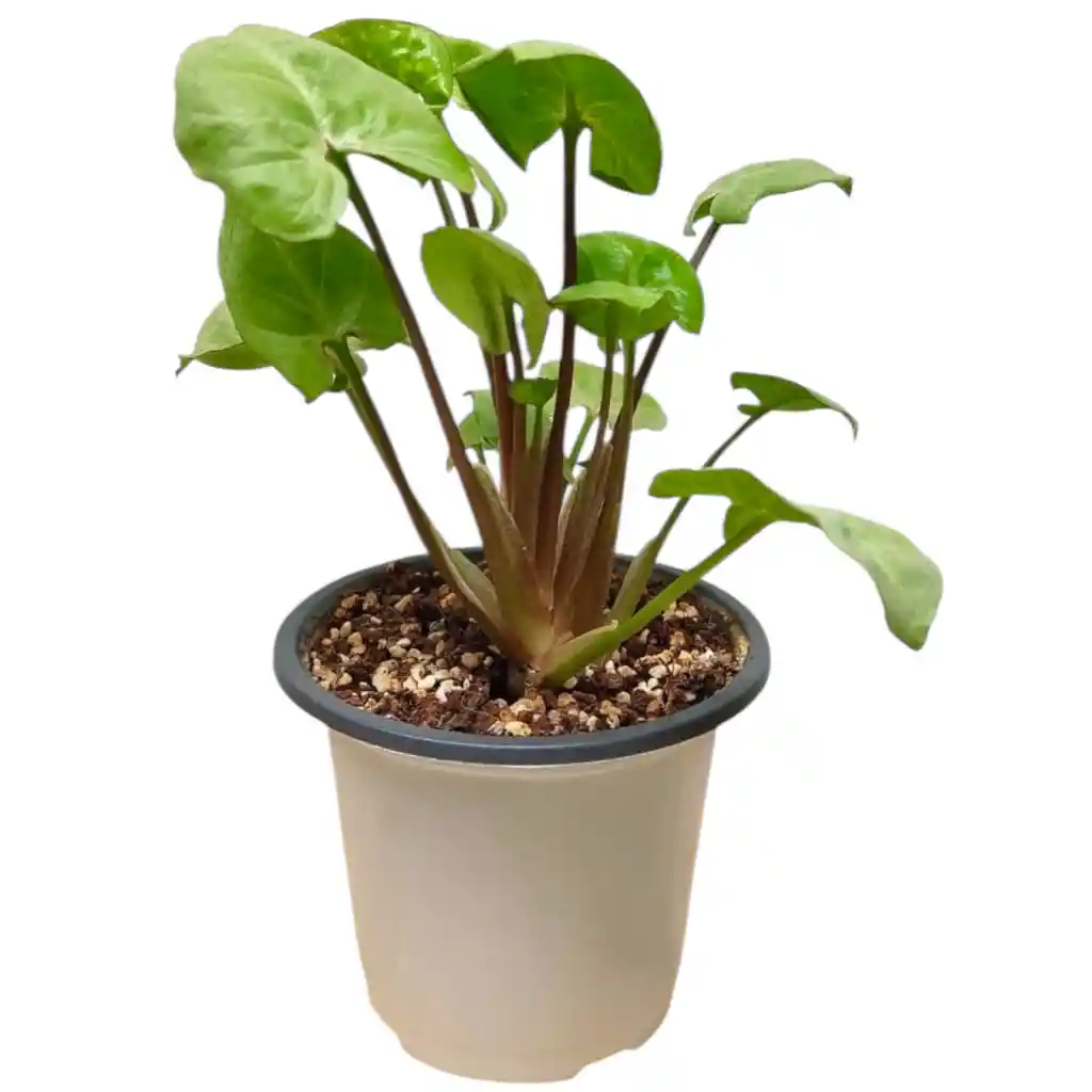Singonio Silver. \n \n¡La Pureza hecha planta!. \n \nDale un toque de luz a tu hogar con el Singonio Silver. Esta planta es famosa por sus hojas en forma de flecha que parecen haber sido bañadas en plata, dejando solo un sutil borde verde esmeralda. Es la planta perfecta para quienes buscan algo diferente a lo convencional sin complicaciones. \n \nGuía Rápida de Cuidados: \n \nLuz: Es una planta con una exigencia lumínica alta por su variegación, debe estar al lado de la ventana, siempre protegiendo sus hojas con un visillo. De esta manera, aseguras un crecimiento óptimo y mantener sus increíbles tonos. \n \nRiego: Es importante dejar secar casi por completo el sustrato antes de regar. \n \nHumedad: Lo ideal para todas las plantas tropicales tener un 60% de humedad como promedio. \n \nTip Plantlovers: Es importante hacer rutinas contra plagas al menos cada dos semanas. ¡Haz un hábito preventivo y nunca tus plantitas sufrirán!. \n \n \nPlanta tóxica, no es Petfriendly 🐶🐱