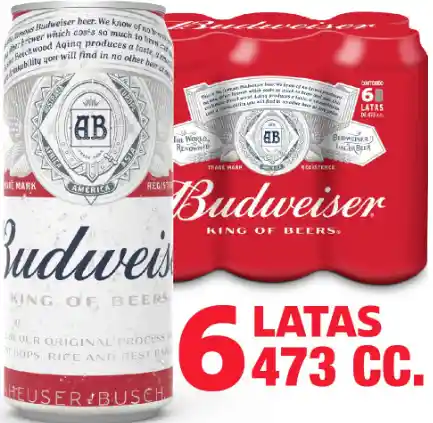 Six Pack Budweiser lata 473cc, cerveza rubia