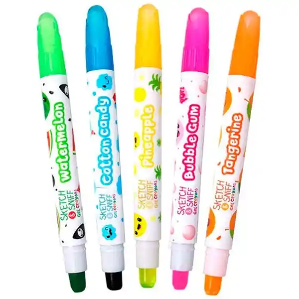 Con 5 Unidades. Lápices de Colores Sketch And Sniff Gel Incluye 5 Crayones Perfumados Afrutados. La Tinta Lavable y no Tóxica Escribe Suavemente y Los Tubos de Plástico Son Fáciles de Sostener Para Las Manos Pequeñas. Set de 5 Crayones de Gel 1 de Cada Uno De: Piña Sandía Algodón de Azúcar Chicle y Mandarina Respetuoso Del Medio Ambiente no Tóxico Los Aromas Duran Hasta 2 Años. Para Mayores de 3 Años
