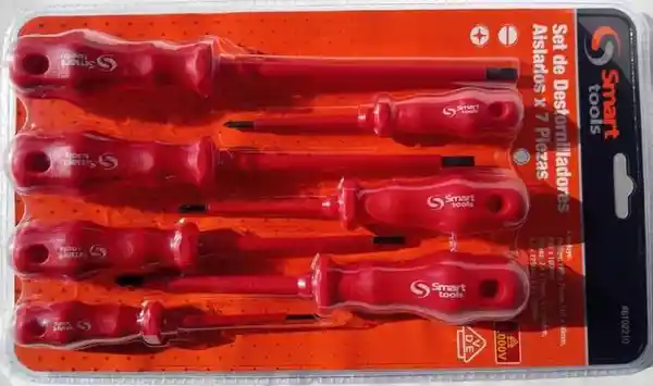 Set Contiene 7 Unidades. De Destornilladores Aislados 1000V Para Trabajos Eléctricos Incluye Ph0 x 75 mm Ph1 x 80 mm Ph2 x 100 mm Planos 2.5 x 75 mm 4 x 100 mm 5.5 x 125 mm 6.5 x 150 mm.