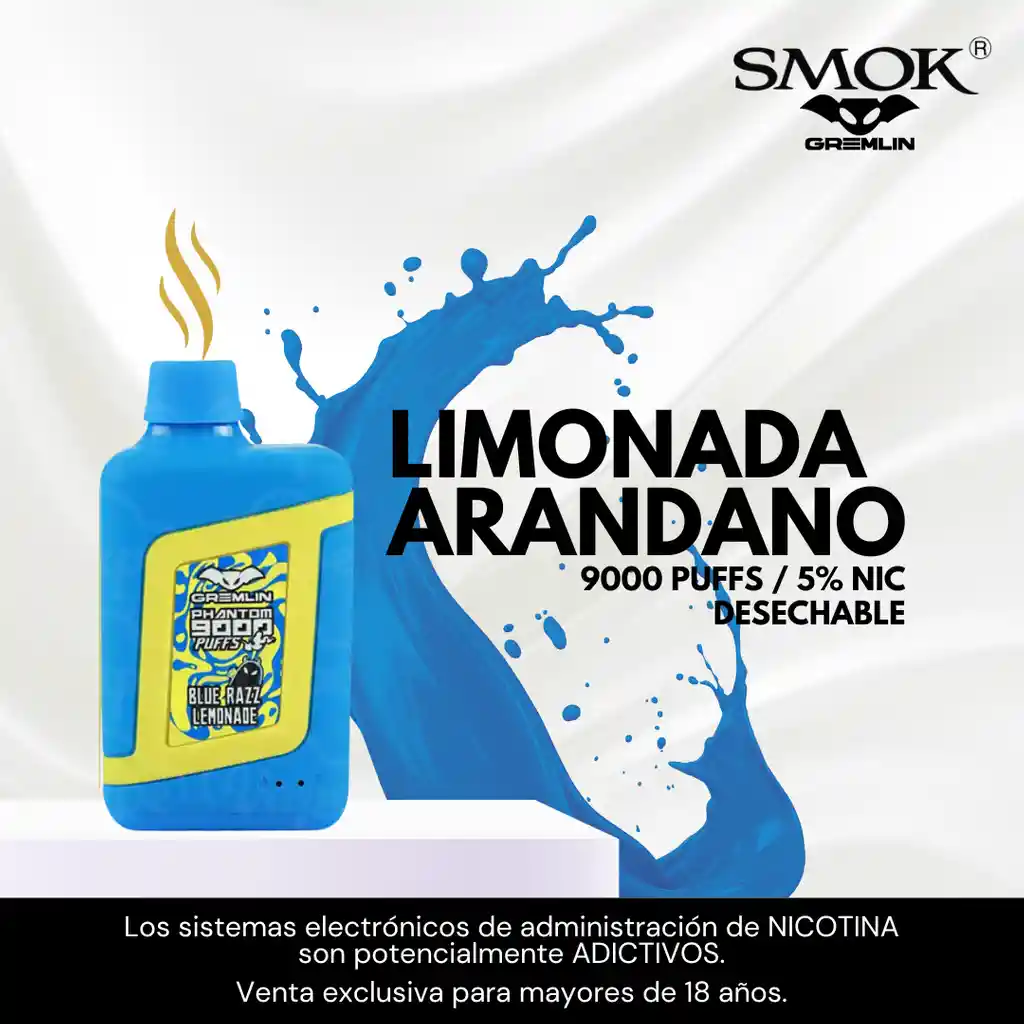En una colaboración con la ya tradicional marca de cigarros electrónicos Smok® se desarrolla el Cigarro electrónico desechable modelo Phantom Series 9000, con alta calidad en sus materiales y diseños elegantes, que te entregan un dispositivo de una ergonomía amigable y gran duración Amplia gama de sabores tropicales llenará cada uno de tus sentidos, ideal para un uso simple sin complicaciones de recargas o cambios de resistencias. – 15ml de líquido en total – Flujo de aire ajustable – 9000 puffs aproximado – Batería de 800 mAh. – Puerto de carga USB C y se recomienda siempre cargar tu dispositivo en una baja carga como un Laptop 20 min – Multifuncional luz LED (Líquido y batería)