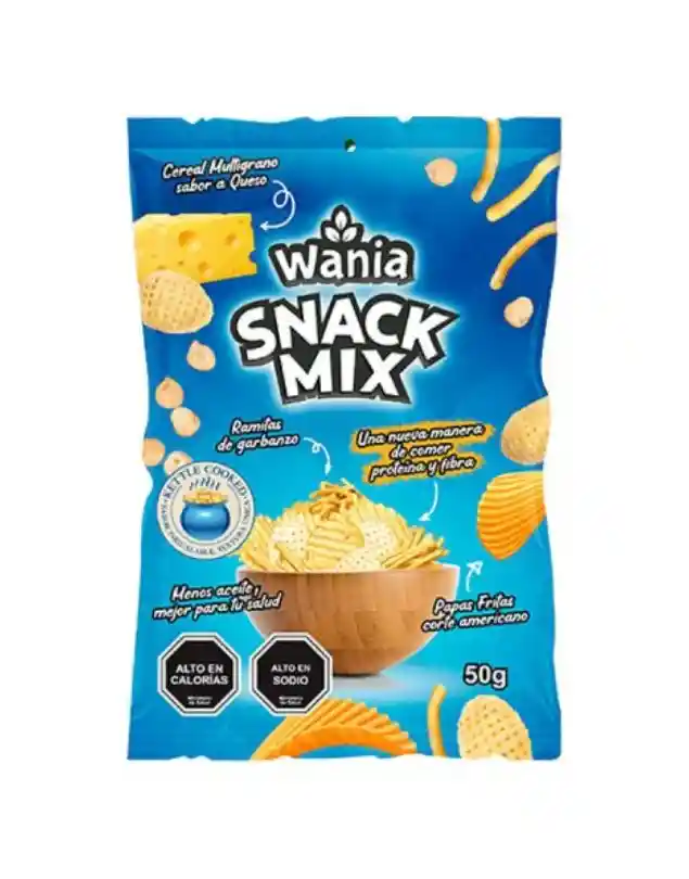 Mix de snacks sabor queso. Alto en proteínas con ramitas de garbanzo, papas centrifugadas corte americano y cereal multigrano.