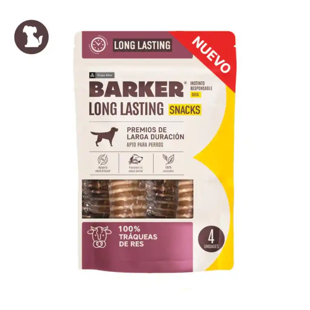 Barker Snack Tráqueas de Res Para Perros (4 unidades) premios Deshidratados de larga duración 100% Naturales y de un solo ingrediente. Con nivel alto de dureza para un entretenimiento prolongado
