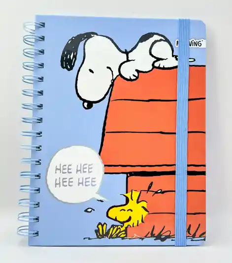 ¡Un clásico que brilla con estilo propio! Estas libretas de tapa dura con espiral combinan diseños divertidos de Snoopy con un toque moderno gracias a sus detalles en folia holográfica. Perfectas para escribir con onda, planificar tu día o simplemente llevarlas contigo a todas partes. El elástico celeste le suma funcionalidad y color, manteniendo tus hojas siempre protegidas. - 96 hojas rayadas - Papel de 80 grs. - Tapa dura con espiral metálico - Detalle en folia holográfica en portada - Elástico celeste de cierre - Tamaño A5 – práctico y cómodo -Ideal para fans, estudiantes y amantes de la papelería con personalidad."