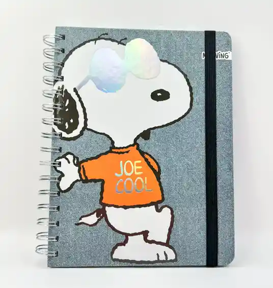¡Un clásico que brilla con estilo propio! Estas libretas de tapa dura con espiral combinan diseños divertidos de Snoopy con un toque moderno gracias a sus detalles en folia holográfica. Perfectas para escribir con onda, planificar tu día o simplemente llevarlas contigo a todas partes. El elástico celeste le suma funcionalidad y color, manteniendo tus hojas siempre protegidas. - 96 hojas rayadas - Papel de 80 grs. - Tapa dura con espiral metálico - Detalle en folia holográfica en portada - Elástico celeste de cierre - Tamaño A5 – práctico y cómodo -Ideal para fans, estudiantes y amantes de la papelería con personalidad."