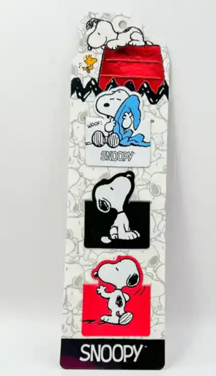 ¡Organiza tu lectura con el estilo único de Snoopy! Este set incluye 3 marcadores magnéticos con diseños distintos del clásico personaje Snoopy. Son prácticos, livianos y se sujetan con firmeza a tus páginas sin dañarlas gracias a su sistema imantado. Perfectos para libros, planners, cuadernos o agendas. ¡Un detalle funcional y adorable para fans de Peanuts! 🐾 - 3 marcadores magnéticos con ilustraciones variadas - Cierre por imán: no se caen ni marcan el papel - Ideal para lectura, estudio o regalar"