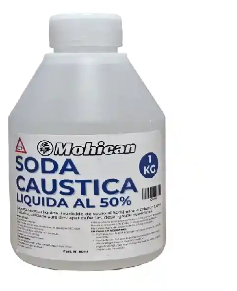 a soda cáustica líquida Mohican al 50% es una solución fuerte y altamente alcalina de hidróxido de sodio, diseñada para trabajos de limpieza profunda y mantenimiento. Usos principales: Destape de cañerías. Desengrasado de superficies. Limpieza industrial y doméstica pesada. Características: Concentración: 50%. Presentación: Líquida. Contenido: 1 kg. Marca: Mohican. Producto de alta eficacia. Advertencias y seguridad: Producto corrosivo, puede causar quemaduras graves. No mezclar con ácidos u otros productos químicos. No usar sobre aluminio. Utilizar guantes, gafas protectoras y ropa adecuada. Mantener fuera del alcance de niños y mascotas. Usar en lugares bien ventilados. En caso de accidente: Contacto con la piel u ojos: enjuagar inmediatamente con abundante agua. Ingestión: no inducir el vómito y buscar atención médica de inmediato. Producto ideal para quienes requieren una solución potente y confiable para limpieza y destapes exigentes.