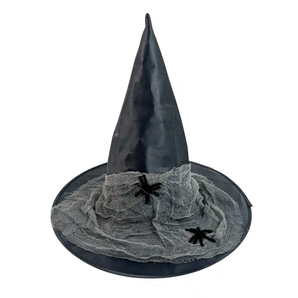 Dale un toque tenebroso y divertido a tu disfraz con este sombrero de bruja decorado con 2 arañas, ideal para Halloween, fiestas temáticas, cosplay o eventos de disfraces. Diseño llamativo y temáticoEl clásico sombrero puntiagudo de bruja se realza con dos arañas decorativas, logrando un look espeluznante y perfecto para destacar en cualquier celebración. Cómodo y ligeroHecho con material resistente y liviano, se ajusta fácilmente y permite usarlo durante horas de fiesta sin molestias. Beneficios Diseño clásico de bruja con decoración de arañas Ideal para Halloween y fiestas temáticas Material ligero y cómodo Accesorio imprescindible para disfraces de bruja Detalles técnicos Cantidad: 1 unidad Material: Tela resistente Diseño: Sombrero puntiagudo con 2 arañas decorativas Dimensiones: 35 cm alto x 37 cm ancho total Talla: Estándar adulto 👠Completa tu disfraz de bruja con este sombrero espeluznante y destaca en tu fiesta. ¡Pídelo ahora y recíbelo en la puerta de tu casa! 🧙♀ï¸ðŸ•·ï¸©
