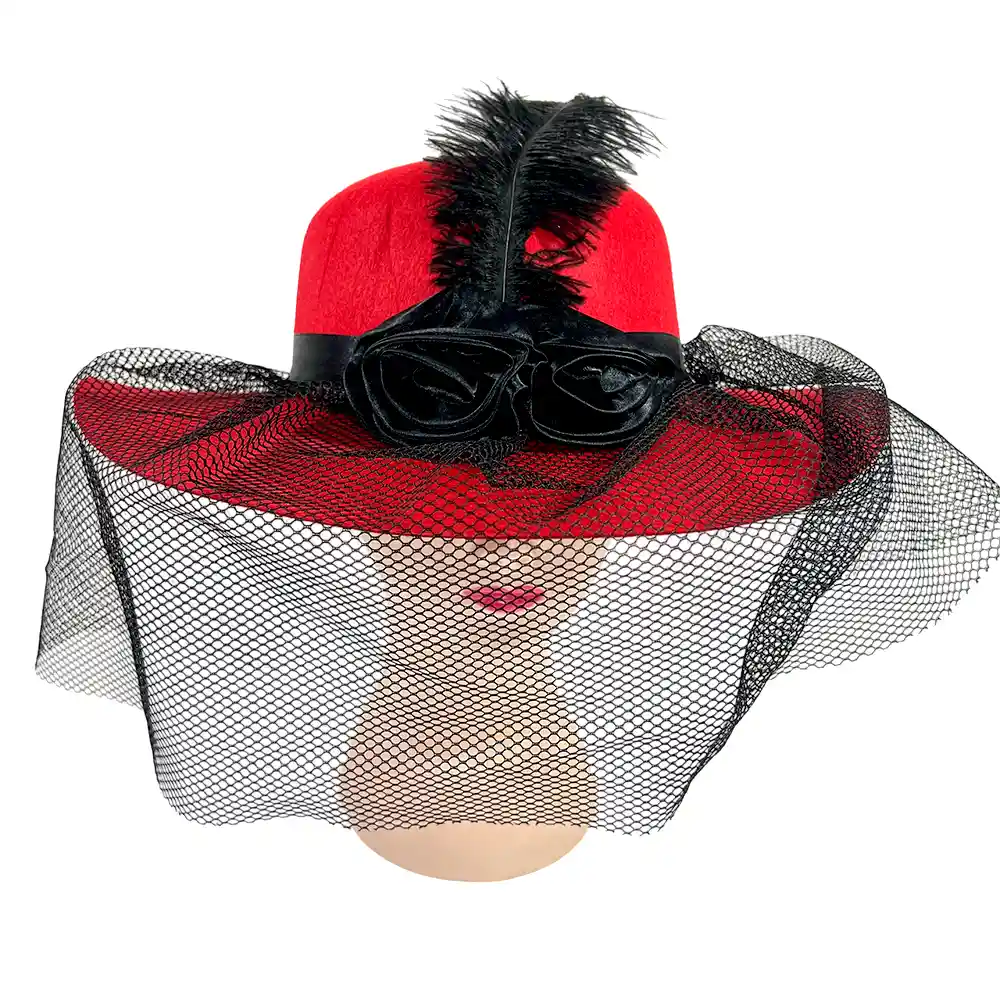 Dale un toque sofisticado y distinguido a tu look con esta capelina roja decorada con velo, flor y pluma, ideal para fiestas, eventos formales, disfraces elegantes o celebraciones especiales. Diseño llamativo y detalladoEl sombrero capelina en color rojo combina velo delicado, flor decorativa y pluma elegante, creando un accesorio único y sofisticado que realza cualquier outfit. Ligero y cómodoFabricado en materiales resistentes y livianos, se ajusta fácilmente y permite usarlo durante horas sin incomodidad. Beneficios Diseño elegante y sofisticado Color rojo intenso con detalles de flor, pluma y velo Material ligero y cómodo Perfecto para fiestas, eventos, celebraciones o disfraces elegantes Detalles técnicos Cantidad: 1 unidad Material: Tela, tul y adornos de flor y pluma Color: Rojo Uso: Fiestas, eventos, celebraciones y disfraces elegantes Talla: Estándar adulto 👠Completa tu look con esta capelina elegante y llamativa. ¡Pídelo ahora y recíbelo en la puerta de tu casa! ©