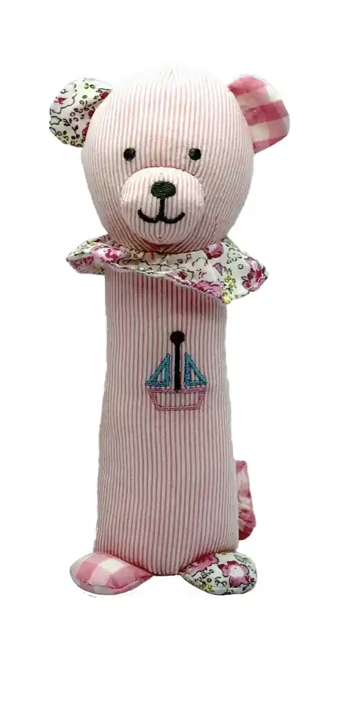 Este tubo sonajero para tu bebé, está hecho en 100% algodón. Además, cuando lo mueves, suena un cascabel dentro de él, que también lo hace muy divertido. Tiene detalles muy lindos y casuales que lo hacen muy simple en su diseño. Tiene un bordado en su nariz y en su cuerpo, un barquito que lo hace muy clásico. *Solo incluye el tubo*. Si quieres puedes comprarlo en pack.