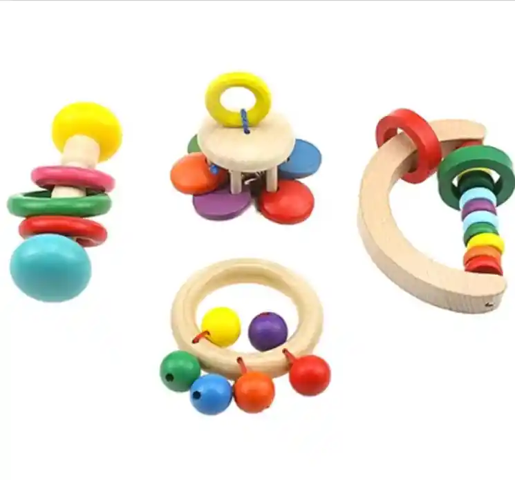 Sonajeros para Bebe, Juguete de Madera Estipulación Temprana Ligero permite al bebé agarrar fácil estos sonajeros Promueve habilidades motoras gruesas y causa un descubrimiento de efecto Los sonajeros de madera cuentan con un acabado a base de agua y no tóxico para los bebés