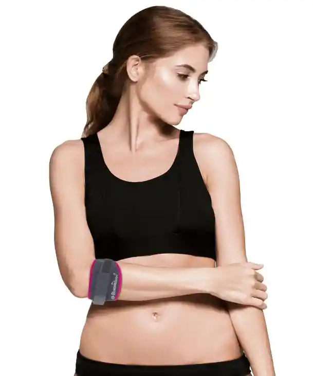 Soporte de codo woman confeccionado en neopreno respirable con cierre<br />de velcro.<br />El soporte de codo actúa ejerciendo presión en la zona de inserción de los tendones del antebrazo provocando relajación de la musculatura.<br /><br />INDICADO PARA:<br /><br />Epicondilitis (codo de tenista) y epitrocleitis (codo de golfista)<br />En la prevención de lesiones deportivas y laborales<br />Como banda de compresión del antebrazo<br /><br />COMPOSICIÓN:<br /><br />Cara Interna: Neopreno Respirable 82% SP Poliéster / 18% 75D Poliéster<br />Cara Externa: Neopreno Respirable, 100% Nylon<br />Cierre de Contacto: 100% Nylon<br /><br />TALLA: Única<br />¿Como Elegir? Contorno del codo: 19 - 33 cm. <br /><br />COLOR: Grafito/Rosa<br /><br />CERTIFICACIÓN Y REGISTROS:<br /><br />Certificación de Norma ISO-9001/2008 Sección 8.2.3 Nº CL13/20100668<br />Registro Nº 9104922<br />Registro del Instituto Nacional de Salud Pública Nº EDM 198/14<br /><br />*Blunding recomienda utilizar este producto bajo prescripción médica.