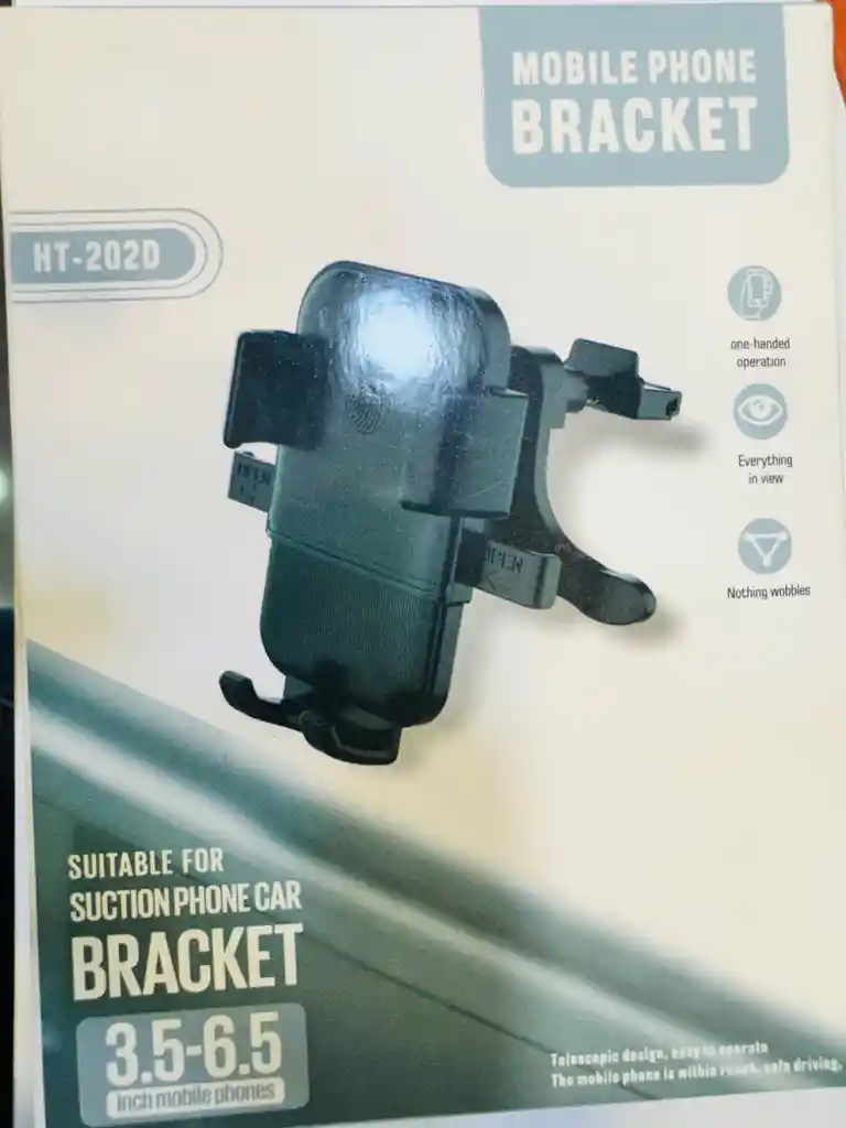 soporte celular para la rejiila del aire acondicionado , tiene dos patitas adicionales para asegurar estabilidad y no se caiga con el movimiento del auto. La base del celular es regulable a cualquier teléfono.