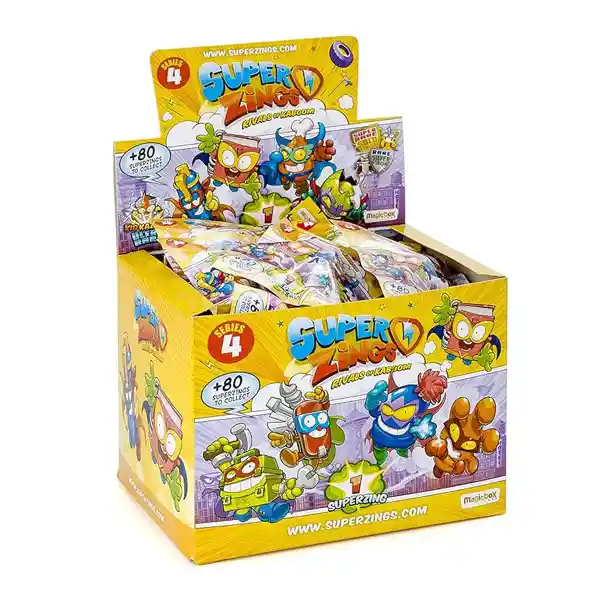 ¡Bienvenidos a Kaboom City, la ciudad donde los objetos cobran vida! En el universo de SuperZings, lo cotidiano se transforma en extraordinario: cada objeto común se convierte en un personaje con superpoderes, dividido entre héroes y villanos que luchan por el control de la ciudad. Esta mezcla de aventura, humor y acción hace que cada figura cobre identidad propia y se convierta en parte de un sinfín de historias. Los SuperZings Serie 4 . Conocidos también como SuperThings, estos coleccionables llegan con nuevos héroes y villanos para que sigas expandiendo tu colección. Cada sobre sorpresa incluye un personaje único y puedes encontrar figuras comunes, raras, ultra raras y doradas. Perfectos para jugar, coleccionar e intercambiar con amigos. Completa tu colección con la Serie 4 de SuperZings.