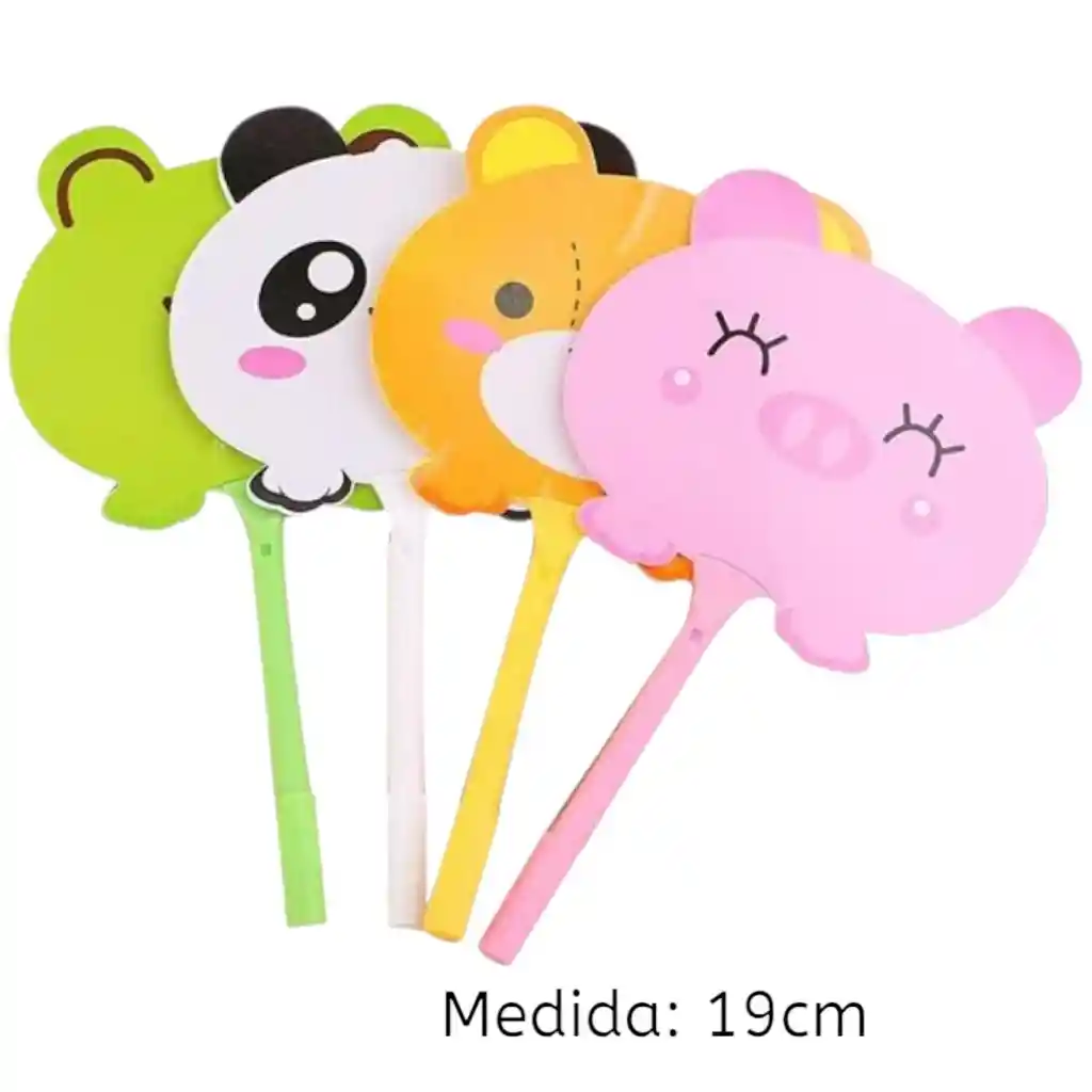 24 BOLIGRAFOS 19 CM ABANICO CARITA ANIMALITO