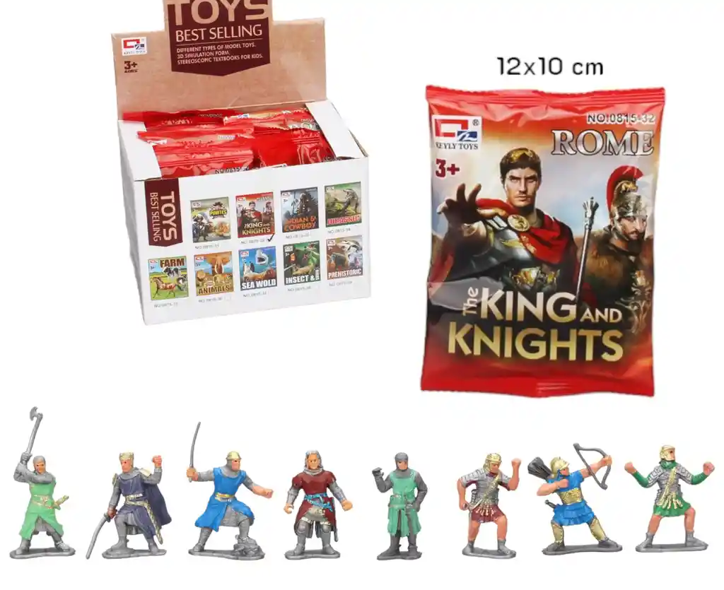 24 sobre sorpresa de 12x10 cm, que contiene 1 figura de soldado romano para coleccionar, son 8 modelos. Con varios modelos diferentes, cada sobre representa una nueva aventura en la antigua Roma. ¿Qué valiente soldado romano se unirá a tu colección? Colecciónalos todos y crea emocionantes historias de batallas épicas, conquistas y gloria en el Imperio Romano. Medidas: 12x10cm caja Caja Interior: 24 sobres