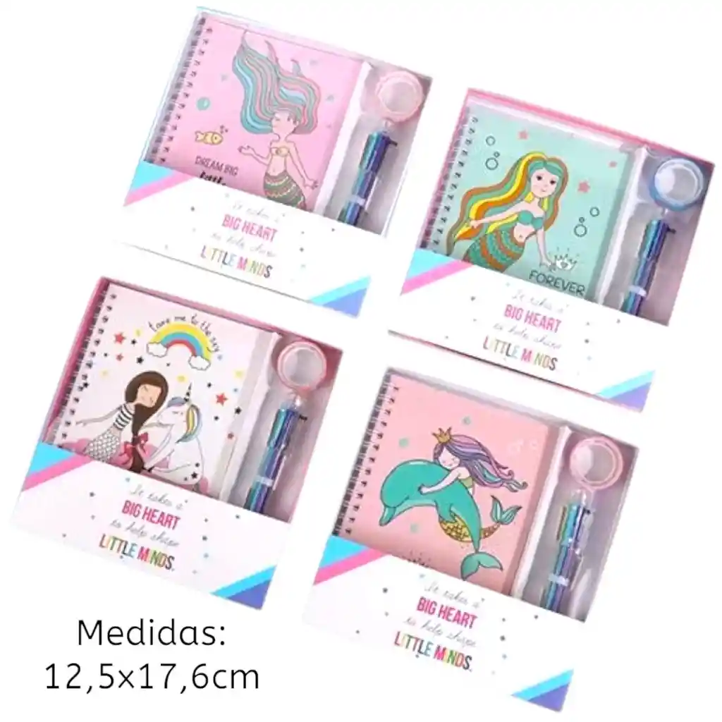 6 LIBRETAS SIRENA (B6) + BOLIGRAFO + CINTA, MEDIDA DE CADA SET 12,5x17,6cm, 4 MODELOS (FOTO)