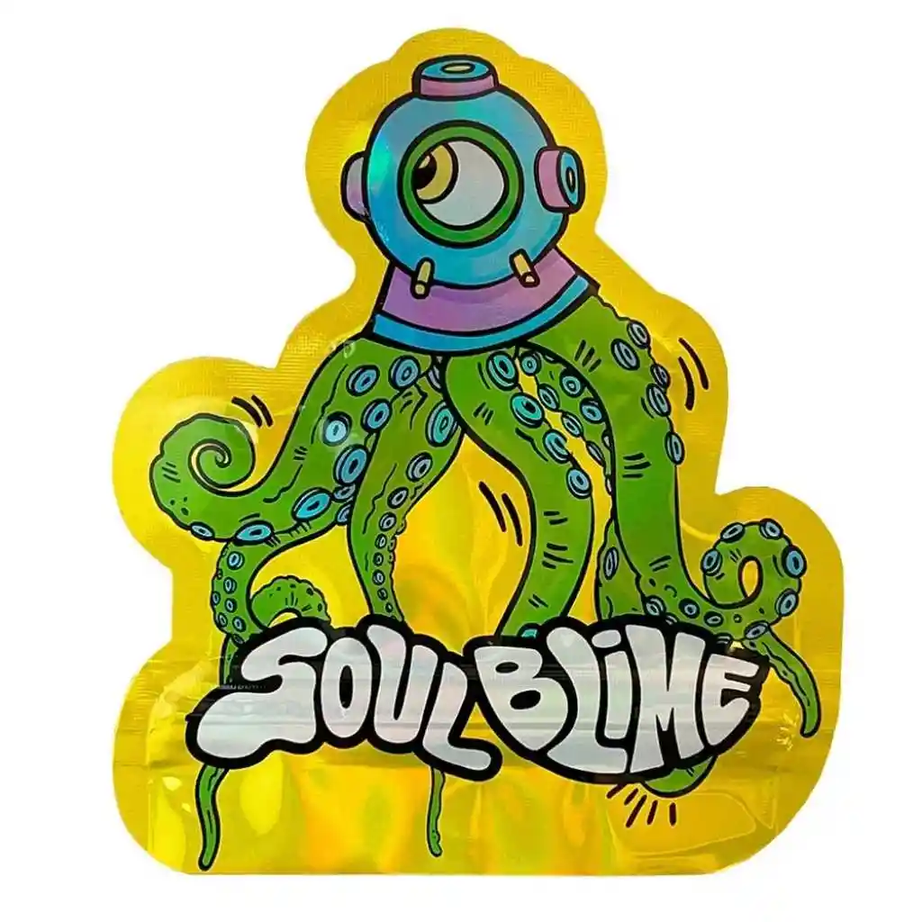 Bolsas herméticas Soulblime diseño Pulpo, tamaño compacto tipo bolsillo. Cierre antiolor seguro, material resistente y flexible. Ideales para transporte discreto, mantener frescura y organizar con estilo llamativo diariamente.
