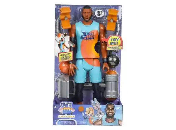 Con la Figura Articulada Lebron James Con Sonido 30 cm Space Jam a New Legacy Pasarás Una Tarde Entretenida Junto a tu Personaje Favorito de la Nueva Película de Los Looney Tunes. Viaja al Espacio Digital Junto a Lebron James y Ayúdalo a Derrotar al Goon Squad en un Increíble Juego de Baloncesto. Pulsa el Pecho de la Figura Articulada Lebron James Con Sonido 30 cm Space Jam a New Legacy y Podrás Escuchar Más de 8 Sonidos y Frases de la Película en Inglés Además Viene Con 4 Accesorios Conecta el Bloqueador Acme a la Espalda de Lebron y Coloca el Balón de Baloncesto y Canasta en Sus Garras. Recrea Las Mejores Escenas de tu Película Favorita Con Esta Increíble Cuadrilla de Los Looney Tunes. lo Mejor Del Espacio y el Baloncesto ya Está Aquí!. Con Sonido y Accesorios.
