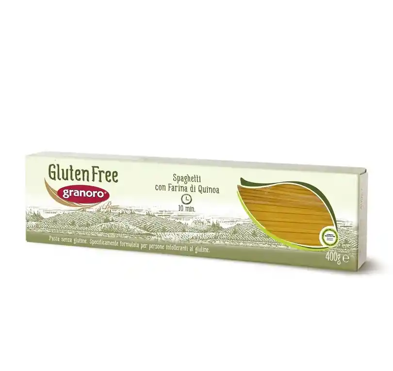 Pasta Gluten Free Granoro – Maíz, Arroz y Quinoa 🍝 El sabor y el aroma de la pasta sin gluten Granoro evocan la calidez del maíz, equilibrado por la suavidad del arroz y el toque vegetal de la quinoa. Esta mezcla única no solo ofrece una textura tenaz y agradable al paladar, sino también un aporte balanceado de fibras, proteínas y minerales, ideal para quienes buscan una alimentación consciente sin renunciar al placer de una buena pasta. Su color dorado, similar al de la pasta de trigo duro, y su superficie rugosa permiten que las salsas se adhieran perfectamente, realzando cada preparación. ✅ Elegir Gluten Free Granoro es: Ser libre de comer con gusto Garantizar a tu cuerpo nutrientes esenciales Disfrutar de un producto seguro y de calidad italiana