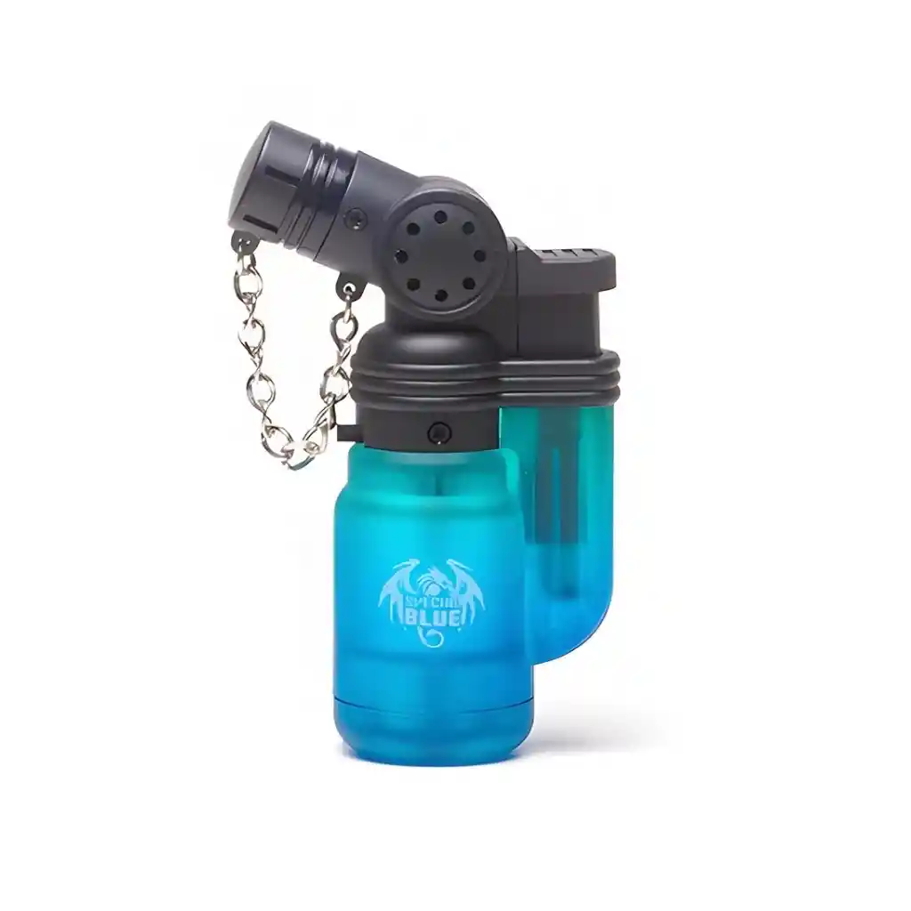 Mini Encendedor Transparente Special Blue: compacto, recargable y práctico para uso diario. Su diseño transparente permite ver el nivel de gas y su llama es ajustable y resistente al viento. Pequeño tamaño, gran funcionalidad.
