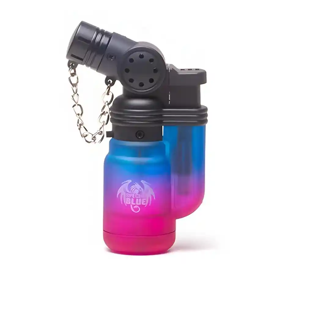 Mini Encendedor Transparente Special Blue: compacto, recargable y práctico para uso diario. Su diseño transparente permite ver el nivel de gas y su llama es ajustable y resistente al viento. Pequeño tamaño, gran funcionalidad.