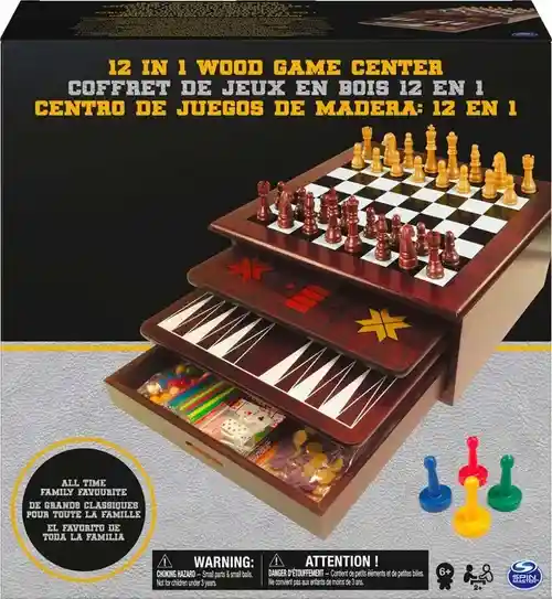 La diversión nunca tendrá fin con este completo set de 12 juegos en 1 sola caja de madera. Incluye los juegos favoritos en una hermosa presentacion en madera, son los juegos de todos los tiempos como Ajedrez, Damas, Pachisi, Backgammon, Palillos, Cartas, Damas Chinas, Mancala, Dados, Serpientes y Escaleras, Solitario y Gato.Todos los clásicos reunidos en un solo Set 12 x 1.