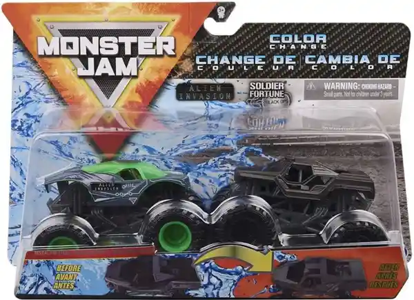 Camiones Monster Jam Que Cambian de Color: ¡Revela el Acero! Sumerge Los Camiones Monster Jam Oficiales a Escala 1:64 en Agua Tibia Para Ver Cómo Sus Colores se Desvanecen. Salpica Con Agua Fría Para Cambiarlas Réplicas Auténticas: Los Camiones Reveal The Steel 1:64 Monster Jam Fundidos a Presión Cuentan Con Detalles Realistas y Gráficos Realistas Neumáticos Oficiales Bkt Ruedas Únicas y un Chasis de Estilo Auténtico. Artículo de Coleccionista: Ambos Camiones Cuentan Con un Conductor Moldeado en el Asiento Del Conductor y Son Una Gran Adición a tu Colección. Se Recomienda de 3 Años en Adelante.