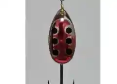 SPINNER SILSTAR 3g PLA/CHI #1_x000D_ / Marca SILSTAR_x000D_ / Modelo Plata Chinita rojo negra_x000D_ / Spinner nr. 1_x000D_ / Peso 3 gms.(aprox)_x000D_ / Largo total 5,6 cms_x000D_ / Horquilla: bronce simple_x000D_ / Pala/Lamina: frente, puntos negros sobre plata en nubaron rojo_x000D_ / Pala/Lamina: reverso, plata_x000D_ / Cuerpo/Cuentas: color bronce_x000D_ / Potera/Tripleta: anzuelo triple zincado_x000D_ / Material metal antioxidante_x000D_ / Presentacion en blister