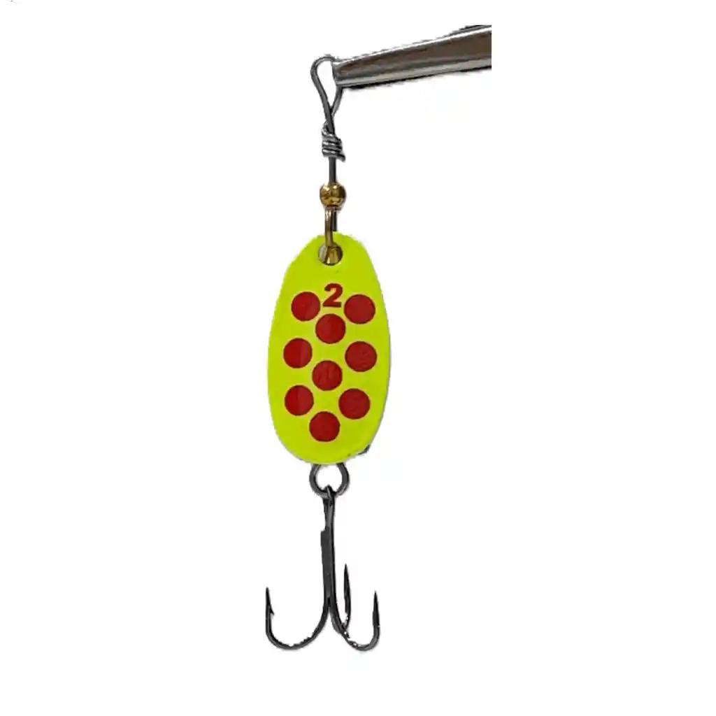 SPINNER SILSTAR 5g AMA FLUO #2_x000D_ / Spinner, cuchara o cucharilla para pesca_x000D_ / Marca SILSTAR_x000D_ / Modelo Fiber Acustic_x000D_ / Llamado Rattling o Vivrax_x000D_ / Acustic pues el cuerpo emite un sonido al trabajar_x000D_ / Spinner nr. 2_x000D_ / Peso 5 gms.(aprox)_x000D_ / Largo total 6,8 cms_x000D_ / Horquilla: dorada simple_x000D_ / Pala/Lamina: frente- amarillo fluor con puntos rojos medianos_x000D_ / Pala/Lamina: reverso- plata_x000D_ / Cuerpo: forma- bala plateada_x000D_ / Cuentas: color dorado_x000D_ / Potera/Tripleta: anzuelo triple zincado_x000D_ / Material metal antioxidante_x000D_ / Presentacion en blister