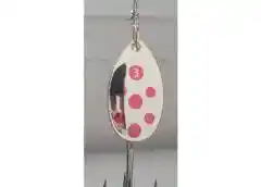 SPINNER SILSTAR 7g PLA/ROJ #3_x000D_ / Marca SILSTAR_x000D_ / Modelo Plata con puntos rojos_x000D_ / Spinner nr. 3_x000D_ / Peso 7 gms.(aprox)_x000D_ / Largo total 7,1 cms_x000D_ / Horquilla: bronce simple_x000D_ / Pala/Lamina: frente, puntos rojos sobre plateado_x000D_ / Pala/Lamina: reverso, plateado_x000D_ / Cuerpo/Cuentas: color dorado_x000D_ / Potera/Tripleta: anzuelo triple zincado_x000D_ / Material metal antioxidante_x000D_ / Presentacion en blister