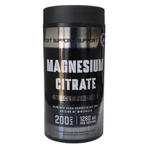 Magnesio Citrato 1280 mg, 200 cápsulas. Apto para veganos. Porción de consumo: 2 cápsulas al día con un vaso de agua.