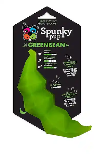 Spunky Pup Fruits Veggies es la Línea de Frutas y Verduras Favorito de tu Perro! Particularmente el Green Bean es un Juguete Interactivo Que Tanto tú Como tu Mascota Amarán. Puedes Rellenar Con Golosinas Saludables Proporcionando Una Diversión Sana y Estimulando Los Instintos de tu Amigo Fiel Con Horas de Diversión Aseguradas. Es Ideal Que Tengas en Cuenta 3 Tipos de Parametros Para Encontrar su Juguete Perfecto ya Que Cada Uno Está Diseñado Para Proporcionar Una Experiencia Diferente Consulta en la Tabla Delantera Del Producto Los Distintos Niveles de Dureza (Hardness) Rebote (Crazy Bounce) y Desafío Para Obtener el Premio (Treat Challenge). ¡Encuentra la Pareja Perfecta Para tu Perro! Spunky Pup Ofrece Una Línea de Juguetes de Alta Calidad Para Perros. Contiene Productos Innovadores Que ya se Han Ganado Una Buena Reputación Gracias al Disfrute Que Consigue Por Parte de Las Mascotas Que Perciben en sí la Experiencia Punky Pop Como Divertida y Saludable Promoviendo el Sano Esparcimiento Entre Los Compañeros de 4 Patas y Sus Dueños. Colecciónalos Todos!. Las Ventajas de Este Producto Son: ¿Desafía a tu Mascota Iquest Quieres Darle un Premio? no se lo Des Tan Fácil! Rellena la Habichuela Con Sus Golosinas Favoritas y Proporciona un Juego Interesante y Divertido Para Ella. (Funciona Mejor Para Razas Pequeñas ya Que Cuenta Con 13 cm de Largo).