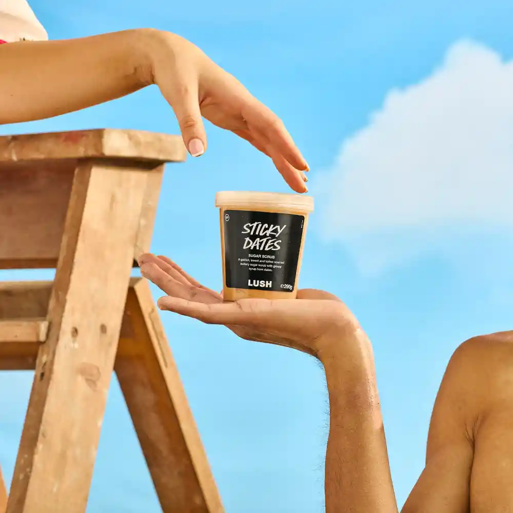 Exfolia, hidrata y perfuma tu piel con Sticky Dates, un exfoliante con azúcar dorado y manteca de cacao que deja una piel radiante y suave.