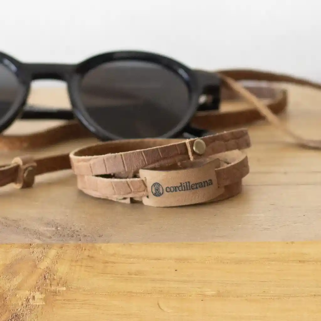 ¡Si eres de las personas que nunca sabe dónde están sus anteojos, tenemos la solución perfecta para ti! En Cordillerana te ofrecemos estas lindas y estilosas correas de anteojos en 4 diseños diferentes, todas hechas a mano por un grupo de artesanos de la comuna de Los Álamos, ubicada en la región de BíoBío. Cada pieza está meticulosamente elaborada en cuero natural y cuenta con un sistema en los extremos donde se introducen las varillas de los anteojos, asegurando que queden colgados de manera segura y con estilo.