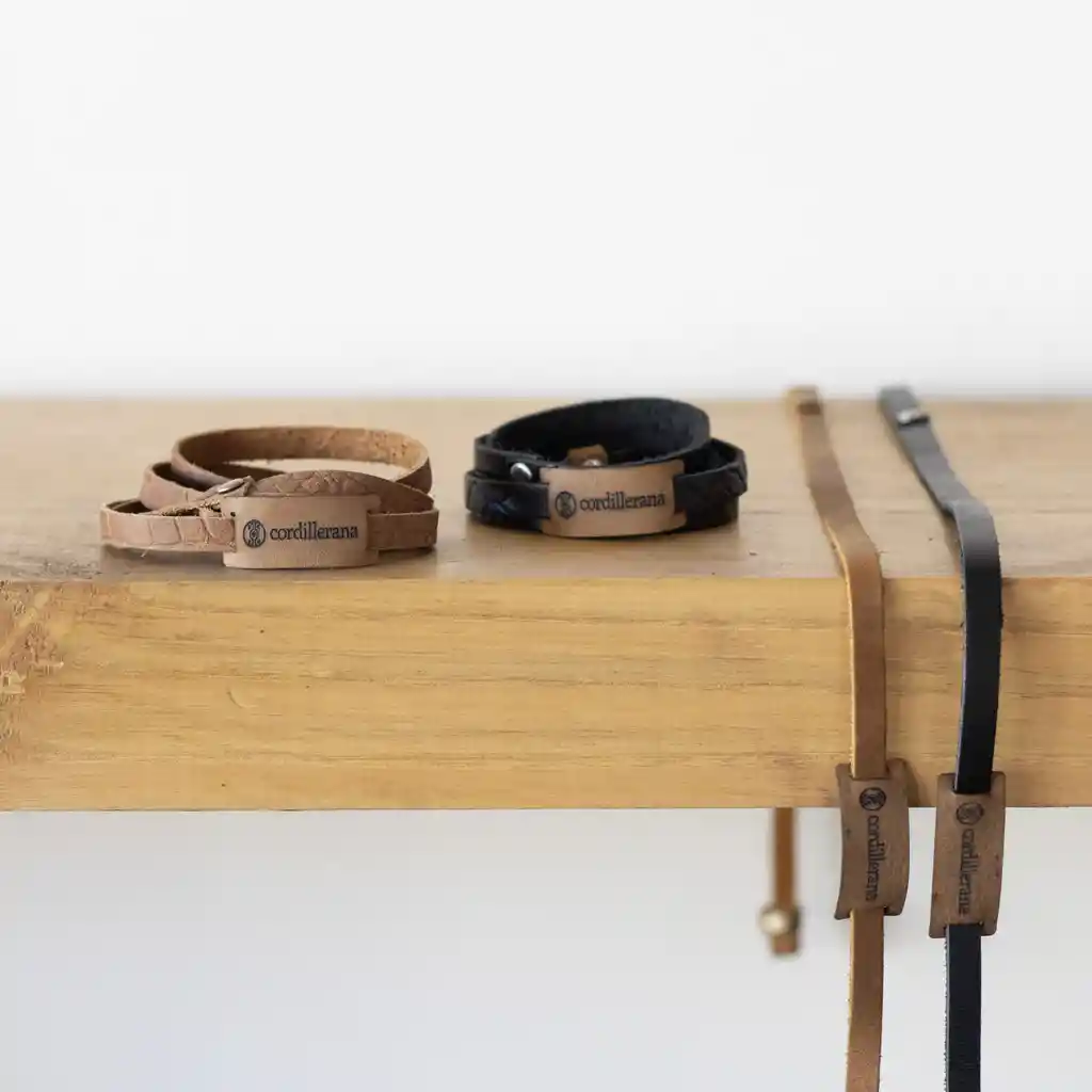 ¡Si eres de las personas que nunca sabe dónde están sus anteojos, tenemos la solución perfecta para ti! En Cordillerana te ofrecemos estas lindas y estilosas correas de anteojos en 4 diseños diferentes, todas hechas a mano por un grupo de artesanos de la comuna de Los Álamos, ubicada en la región de BíoBío. Cada pieza está meticulosamente elaborada en cuero natural y cuenta con un sistema en los extremos donde se introducen las varillas de los anteojos, asegurando que queden colgados de manera segura y con estilo.