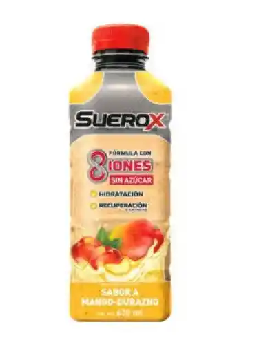 Suerox hidratación Superior. Agua purificada desmineralizada, Polidextrosa, Maltodextrina, Lactato de calcio, Ácido cítrico, Cloruro de potasio, Cloruro de magnesio, Saborizante idéntico a natural, Sorbato de potasio, Benzoato de sodio, Ester de glicerina de colofonia, Dicarbonato de dimetilo, Sucralosa, Sulfato de zinc, Acesulfame k, Tricloruro de cromo, Selenito de sodio, Sulfato de manganeso, Tartrazina, Amarillo crepúsculo.