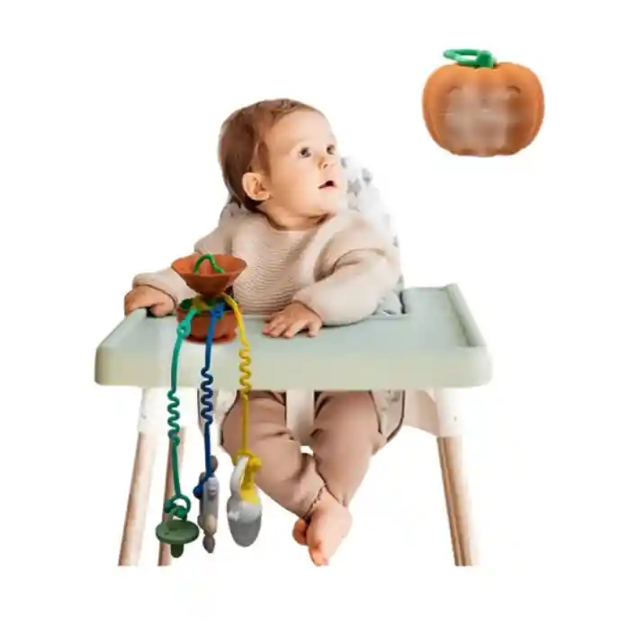 Estás cansado de recoger juguetes que se pasan cayendo? La calabaza con su tecnología de succión se fija directamente a la bandeja de la silla de comer de tu bebé, la mesa de tu casa o un restaurant, la mesita del avión o simplemente a cualquier superficie plana y lisa para sostener los juguetes favoritos de tu bebé. La base de ventosa y las correas ajustables mantienen los juguetes sujetos al alcance del bebé y evitan que caigan al suelo. La calabaza está fabricada de silicona de grado alimenticio, es libre de BPA, PVC, látex, plomo ni ftalatos.