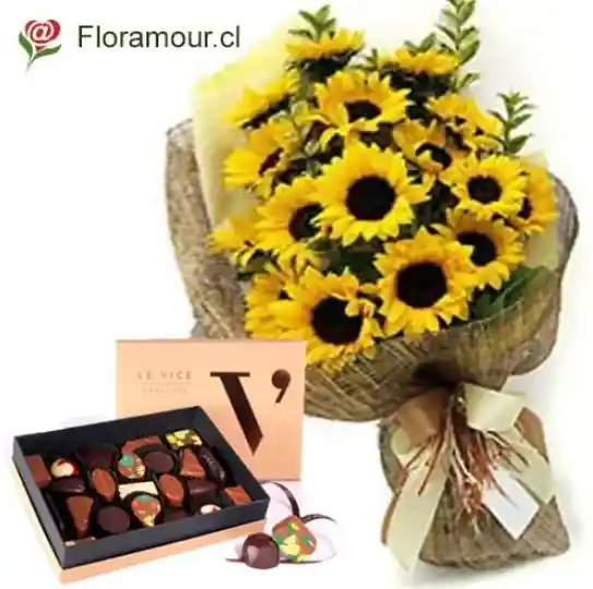 Summer – Gran ramo de girasoles con caja de chocolates «Le Vice»