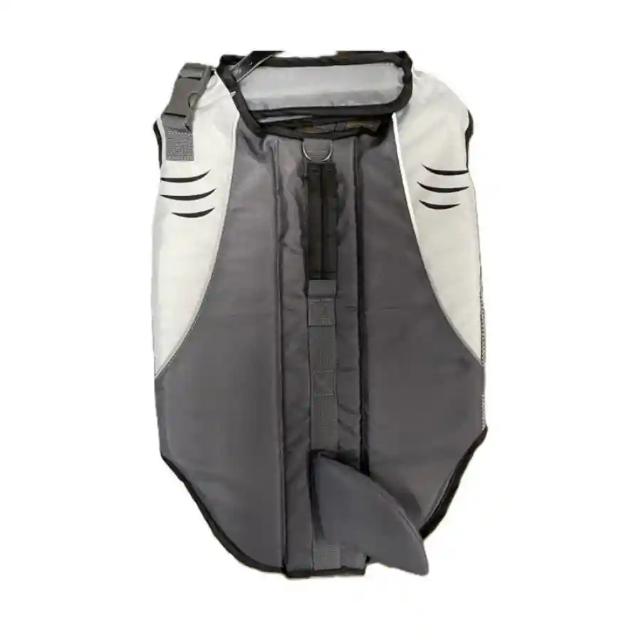 Chaleco salvavidas para perros Summer Vibes con diseño de tiburón. Ajuste ergonómico, flotabilidad con espuma, tejido Oxford impermeable y broches de seguridad. Incluye asa superior y anilla D para correa. Ideal para playa, lago o piscina.