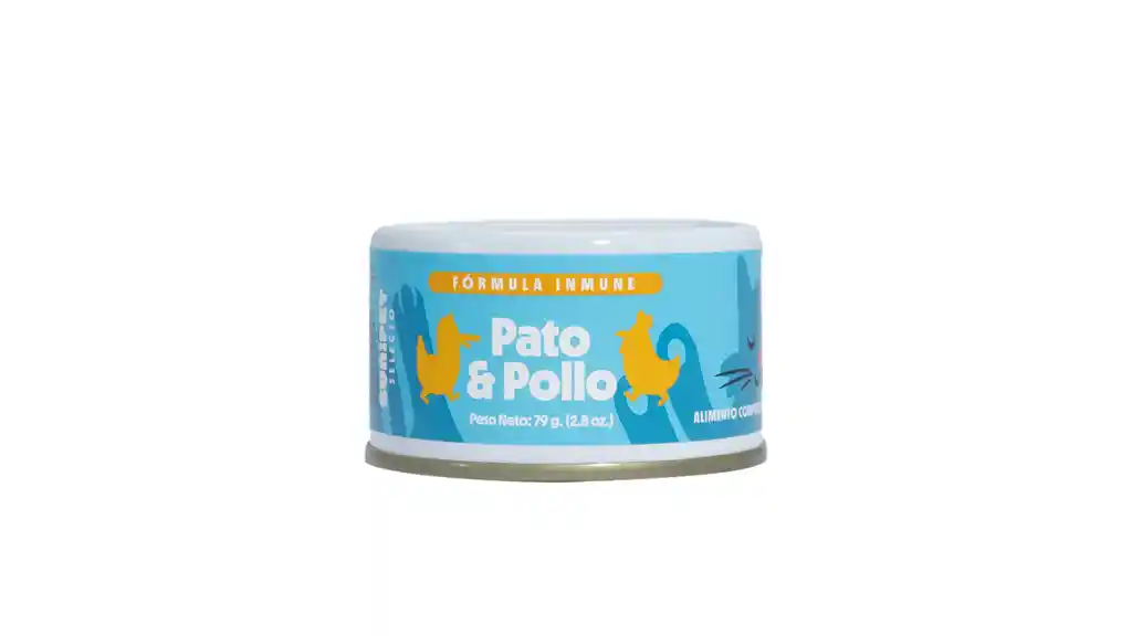 SuniSelecto es un alimento húmedo completo y funcional con carne real de pato y pollo, que refuerza el sistema Inmune y la mucosa gastrointestinal. Contiene L-Lisina, Cúrcuma y Tapioca que promueven el bienestar general de los gatos. Ingredientes: Pato, pollo, caldo de pato, caldo de pollo, aceite de girasol, almidón de tapioca, sal, fosfato tricálcico, goma guar, sulfato de calcio, fructooligosacárido, cúrcuma en polvo, arándano en polvo, cloruro de colina, taurina, cloruro de potasio, vitaminas (suplemento de vitamina A , suplemento de niacina, mononitrato de tiamina, clorhidrato de piridoxina, suplemento de vitamina D3, D-pantotenato de calcio, suplemento de riboflavina, biotina, suplemento de vitamina B12, ácido fólico, complejo de bisulfito de sodio de menadiona (fuente de la actividad de la vitamina K), suplemento de vitamina E, Monoclorhidrato de L-lisina, sabor natural, minerales (óxido de zinc, hierro reducido, selenito de sodio, sulfato de manganeso, complejo de aminoácidos de cobre, yoduro de potasio), sabor natural, apio en polvo. Dosis Recomendada: Para gatos adultos: 1 a 4 latas por cada 2 a 4 kg de peso corporal. Kittens: Ofrézcales comida varias veces al día, hasta el doble de la cantidad recomendada. Gatas gestantes o lactantes: Pueden requerir hasta 4 veces su alimentación habitual. Se recomienda alimentar dos veces al día y ajustar la porción según la edad, actividad y peso de tu gato. CONTIENE: 79g.