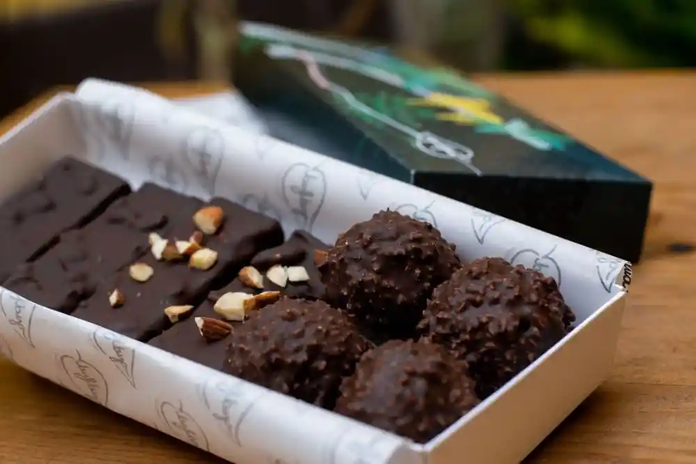 Caja de 4 ferreros Rawcher, 2 snickers de maní y 2 snickers de almendras