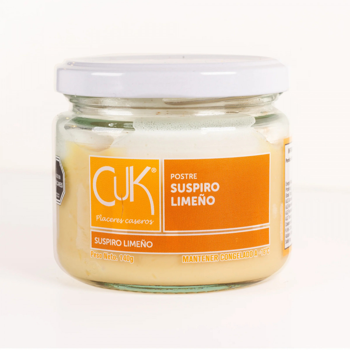 Peso neto: 140 grs. Mantener congelado a -18 C, duración 12 meses. Ingredientes: Mezcla suspiro (leche condensada (leche parcialmente descremada y azúcar), leche evaporada (leche descremada, aceite vegetal de palma y ortofosfato de sodio), yema de huevo pasteurizada y esencia vainilla (agua, alcohol etílico, saborizante vainilla artificial, colorante caramelo y sorbato de potasio)), merengue (azúcar, clara de huevo, agua y gomaxanthan) y canela.Contiene: Lácteos y huevo. Elaborado en instalaciones que también procesan: Gluten, crustáceos, pescados, maní, soya y nueces.