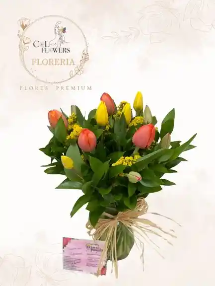 UN DELICADO ARREGLO DE 12 TULIPANES FRESCOS, PRESENTADOS EN UNA ELEGANTE BASE DE VIDRIO TRANSPARENTE QUE REALZA LA PUREZA Y FRESCURA DE CADA TALLO. ESTA PIEZA ES IDEAL PARA TRANSMITIR EMOCIONES SINCERAS CON UN TOQUE DE SOFISTICACION, EVOCANDO LA BELLEZA SUTIL (COLOR DE TULIPANES SEGUN DISPONIBILIDAD EN TIENDA)