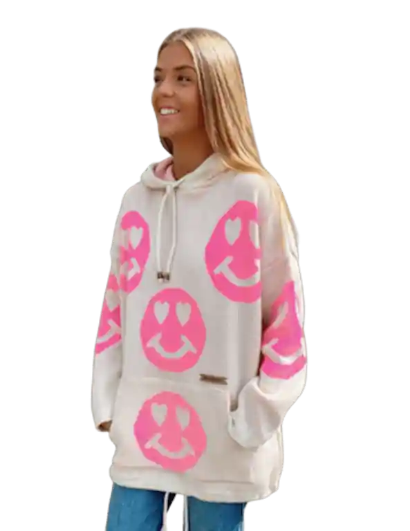 Sweater Poleron Luz Vibrant Smiley Beige Caritas Rosa