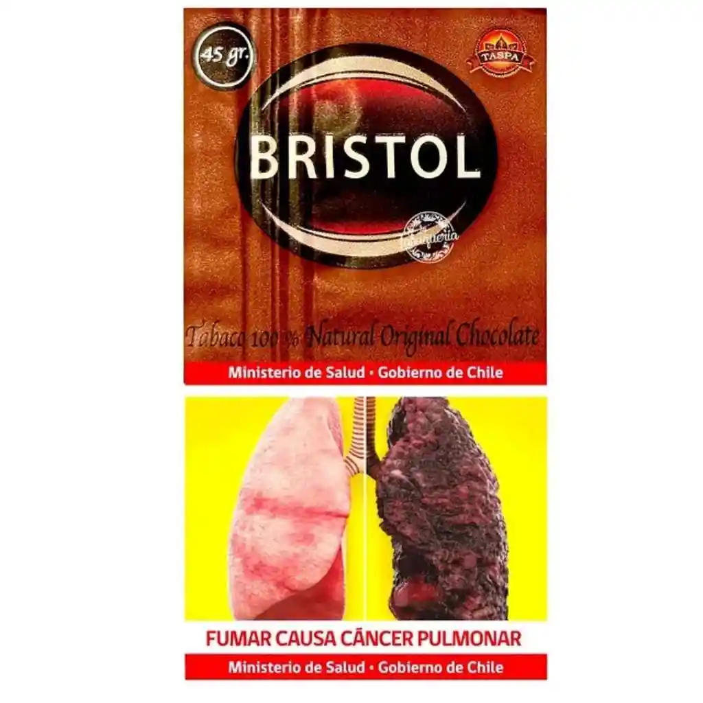 Tabaco aromatizado Bristol sabor Chocolate, con perfil suave y dulce. Corte fino, fácil de manipular y aroma agradable. Presentación de 45 g, ideal para quienes buscan un sabor distintivo y una experiencia equilibrada.